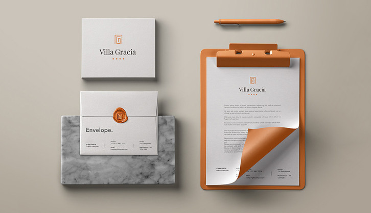 Predloženo grafičko rješenje sastoji se od znaka, ilustrovane siluete boginje Adeone, koji je predstavljen vijugavim putićem u negativnom prostoru, odnosno kosi boginje, kao i ispisa Adeona serifnim pismom Crimson Text u masnom rezu, koji u kombinaciji sa znakom u zlatnoj boji komunicira luksuz, komfor i povjerenje.
